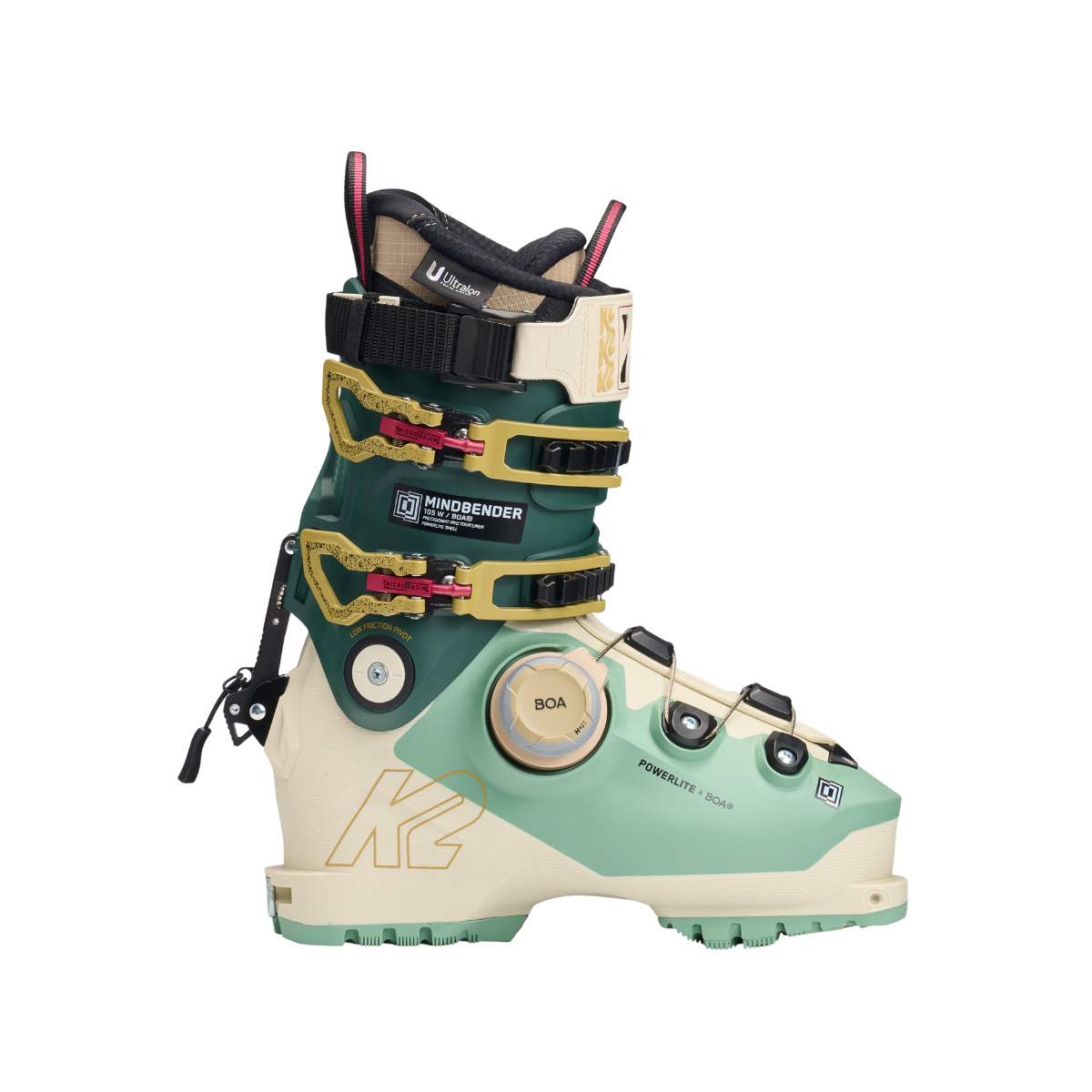 K2 Mindbender 105 BOA dömu skíðaskórnir eru hágæða og sterkbyggðir með Powerlite skel skór sem eru sérsniðnir fyrir konur. Vandaðir skíðaskór fyrir vana skíðakonu sem hægt er að nota í troðinni braut eða utan brautar þökk sé GripWalk tækninni. Þægileg fyrirfram mótaður sokkur (sem tekur vel á móti fætinum) og Powerlock Spyne stilling með 50° hreyfibil sem tryggir öll þau þægindi sem þú þarft út daginn. Mindbender skórnir nú fáanlegir með BOA® reimakerfinu sem útrýmir þörfina á LV (98mm) og MV(100mm) breiddum á svigskíðaskóm en eru skórnir með breidd frá 97mm upp í 100mm. Tech fittings tæknin, sem er innbyggð í ytri skelinni, gerir það að verkum að hægt er að nota skóna bæði með DIN bindingum og teknískum bindingum (Tech bindings). Allt sem þú ert að leita að í 50/50 skóm.
