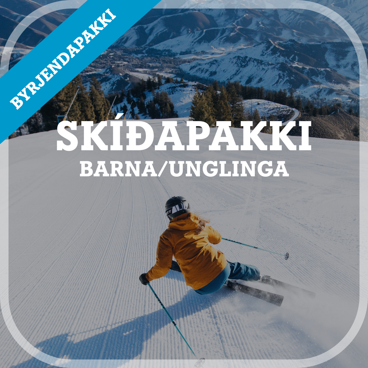 Skíðapakki fyrir börn og unglinga! Frábær pakki fyrir þau sem eru að ná tökum á skíðamennskunni, hvort sem þetta eru allra fyrstu skíðin eða ný skíði fyrir börn sem hafa smá reynslu á bakinu nú þegar.