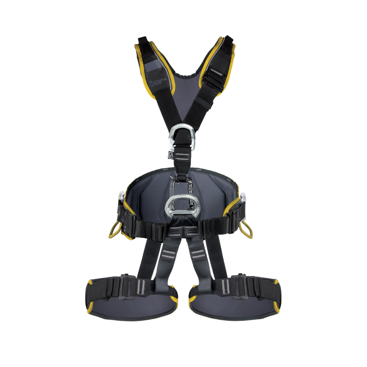 Stillanlegt klifurbelti með fóðruðu og víðu mittisbelti, fótalykkjum og axlarólum. Hentar í klifur, sig, vinnu og fallvarnir.