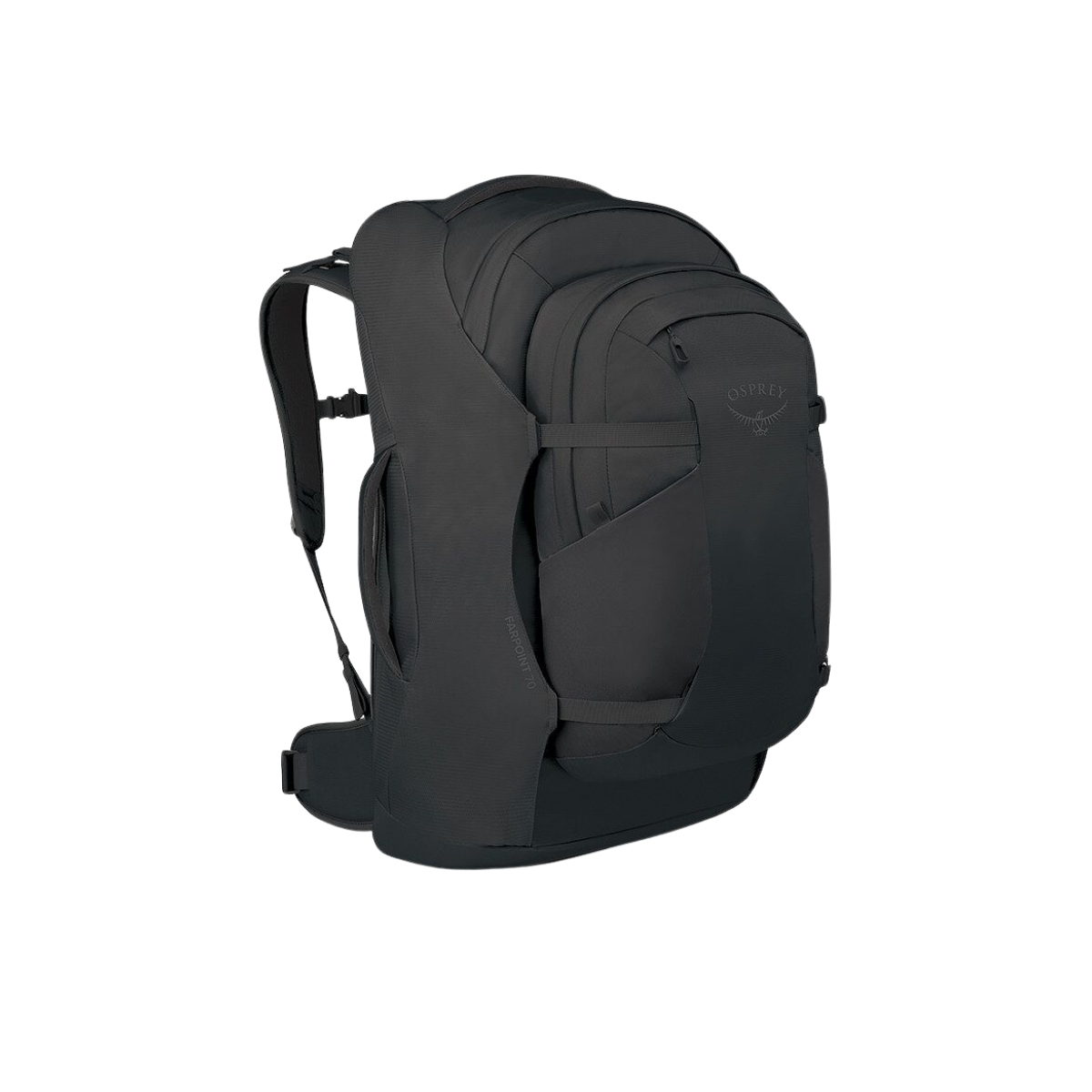 Osprey Farpoint 70L ferðabakpoki - hentar þeim sem eru að ferðast langt og vilja ferðast létt. Farpoint bakpokinn er blanda af öllu því besta sem ferðabakpokar þurfa að hafa. Efnið í bakpokanum andar vel, hægt er að stilla bakpokann á margvíslegan hátt svo að hann passi sem best á bakið á þér. LightWire rammi í pokanum dregur þyngd bakpokans í burði.