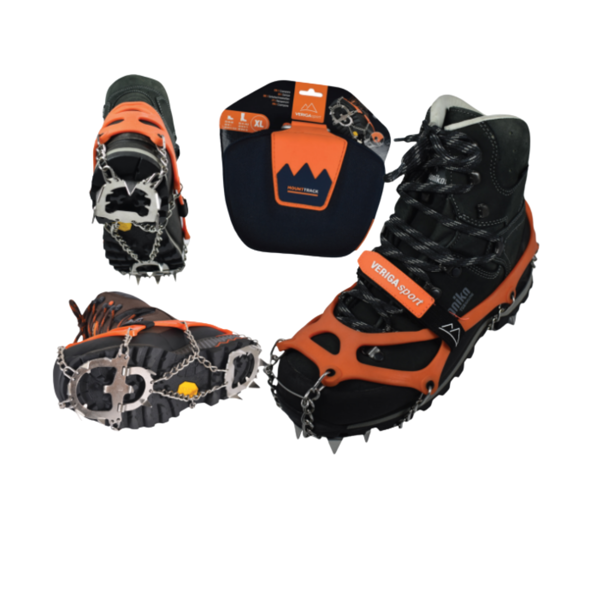 Frá snjókeðjuframleiðandanum Veriga kynnum við Mount Track, 13punkta mannbrodda úr vönduðu stáli sem standast álagið.